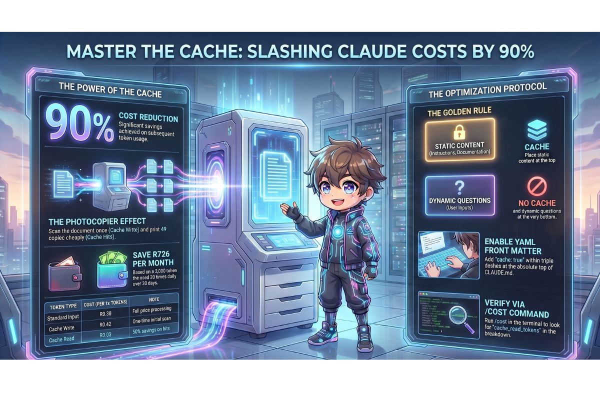 CLAUDE.mdused 50 times per day costs approximately R840 per month without caching and approximately R113 per month with caching — a saving of around R727 per month - Static content (your